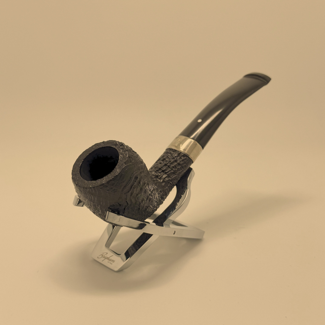 The Dunhill Year of the Rabbit pipe is a refined celebration of the Lunar Zodiac, crafted with the elegance and precision expected from Alfred Dunhill. Its deeply textured black sandblast showcases the natural grain of the briar, while the sterling silver band adds a distinguished touch of luxury. The gently bent stem provides a comfortable, balanced feel in hand, making it as much a pleasure to hold as it is to smoke. Produced in highly limited numbers each year, the Year of the Rabbit edition stands as a collector’s piece—an exquisite fusion of tradition, craftsmanship, and Dunhill’s unmistakable style.