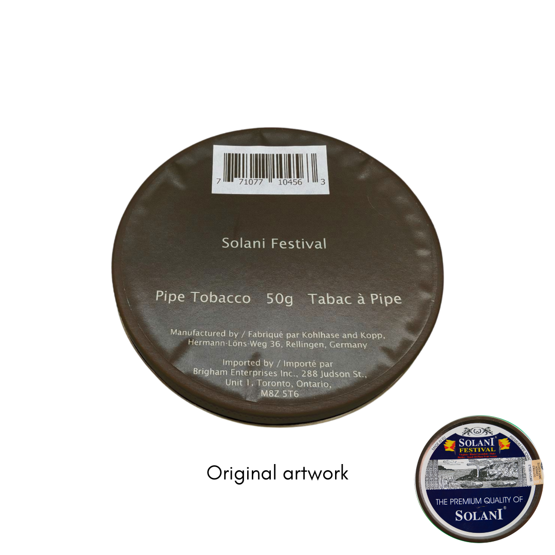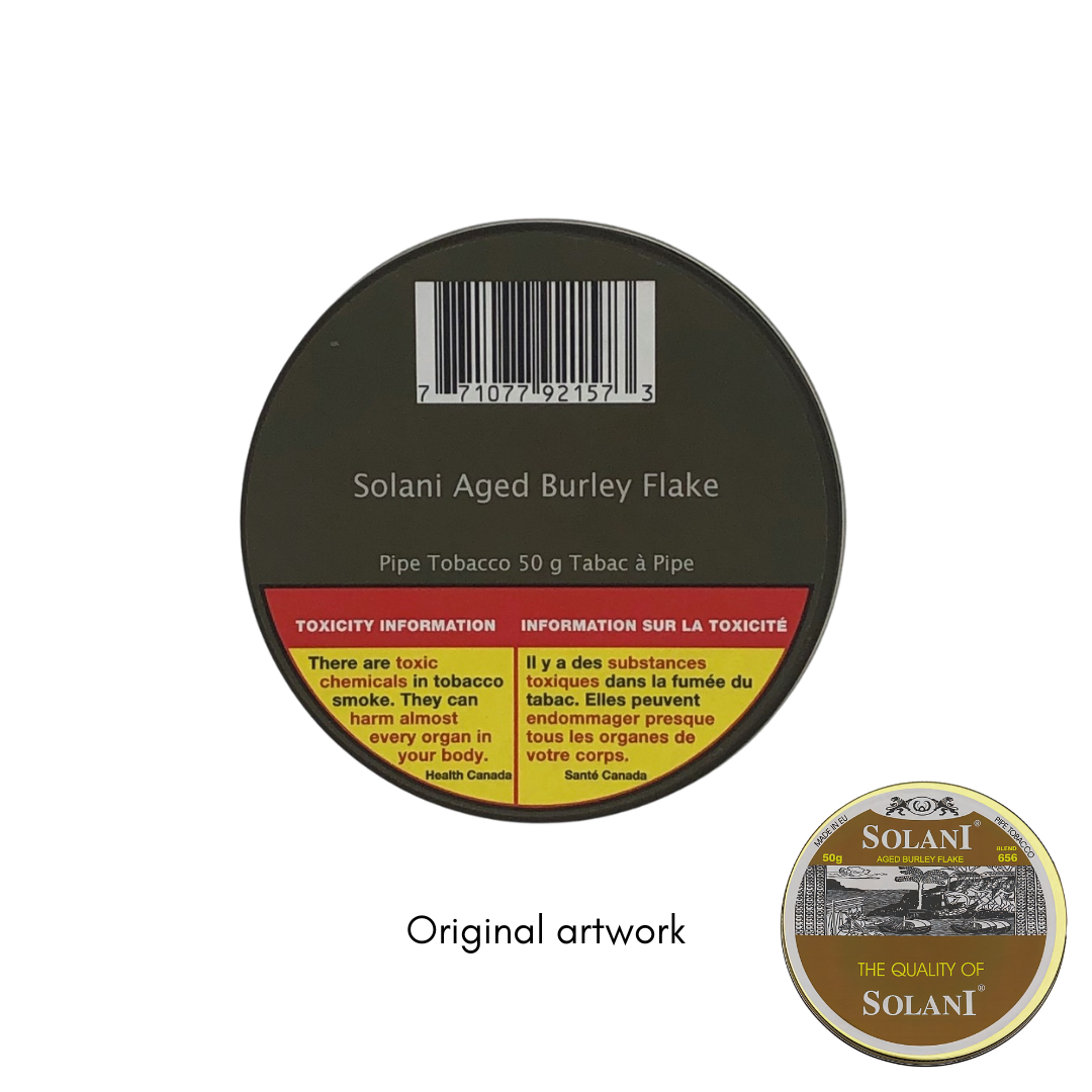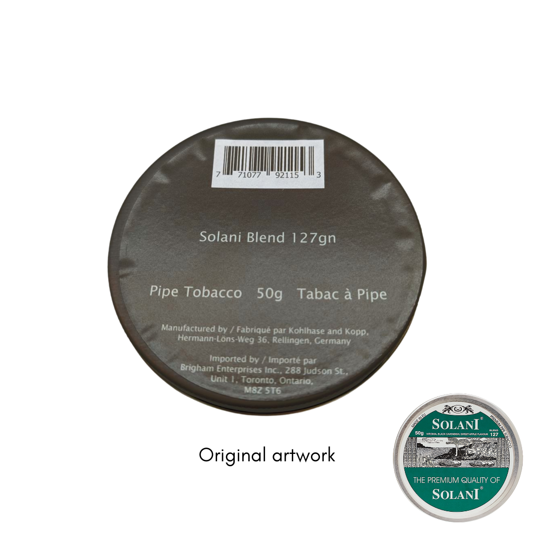 All Solani pipe tobaccos are packaged in 50 gram tins only.