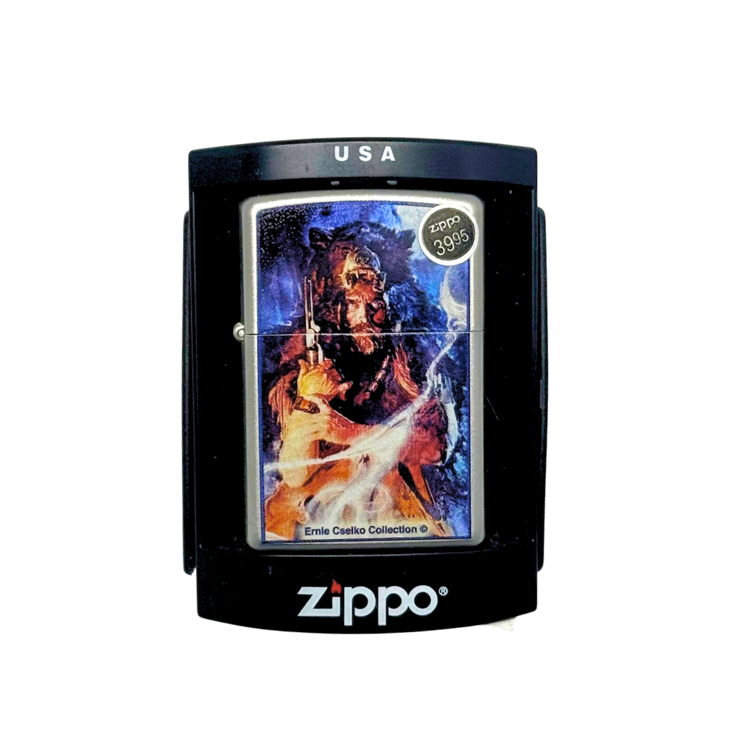 The Zippo “Bring On the Night” lighter showcases a dramatic, atmospheric design from the Ernie Cselko Collection, featuring a rugged, gun-ready figure emerging from swirling smoke and vibrant colour. It’s classic Zippo through and through—windproof, reliable, and built with the brand’s signature all-metal construction—paired with artwork that captures intensity, mystery, and gritty style. A perfect choice for collectors or anyone who wants a lighter with real personality.